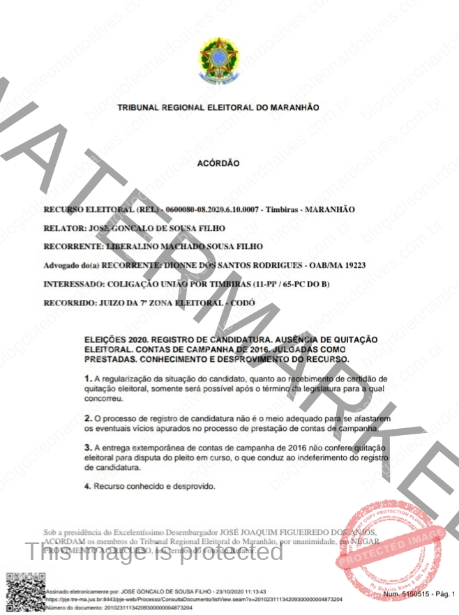 Deste modo, é temerária a situação do então candidato a Prefeito de Timbiras, João dos Plásticos (PC do B), que está correndo sérios ricos de ficar fora da disputa em Timbiras por causa do indeferimento da candidatura de seu vice, Dr Bel, deixando seus eleitores em uma situação bem confusa, uma vez que podem votar e terem anulados os seus votos pela justiça.