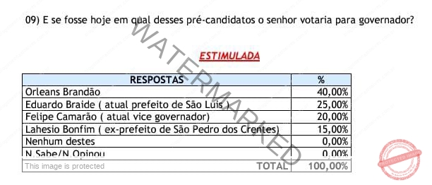 No município de São Domingos do Maranhão, pesquisa do Instituto Nacional de Opinião Pública (Inop Previsão) aponta que o secretário de Assuntos Municipalistas, Orleans Brandão (MDB) tem a preferência do eleitorado, com 40% das intenções de voto.