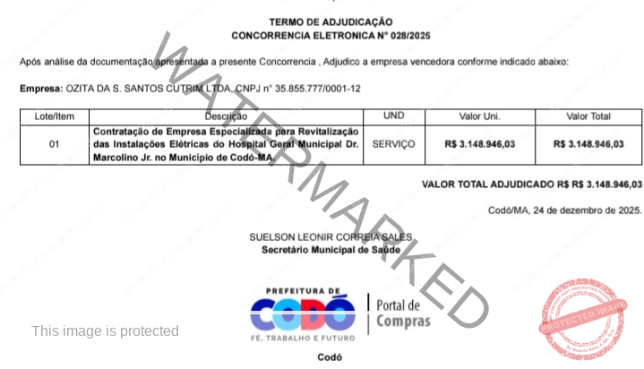 O valor é considerado um absurdo diante da situação em que se encontra o Hospital Geral Municipal de Codó, administrado pela esposa do vereador Raimundo Leonel.