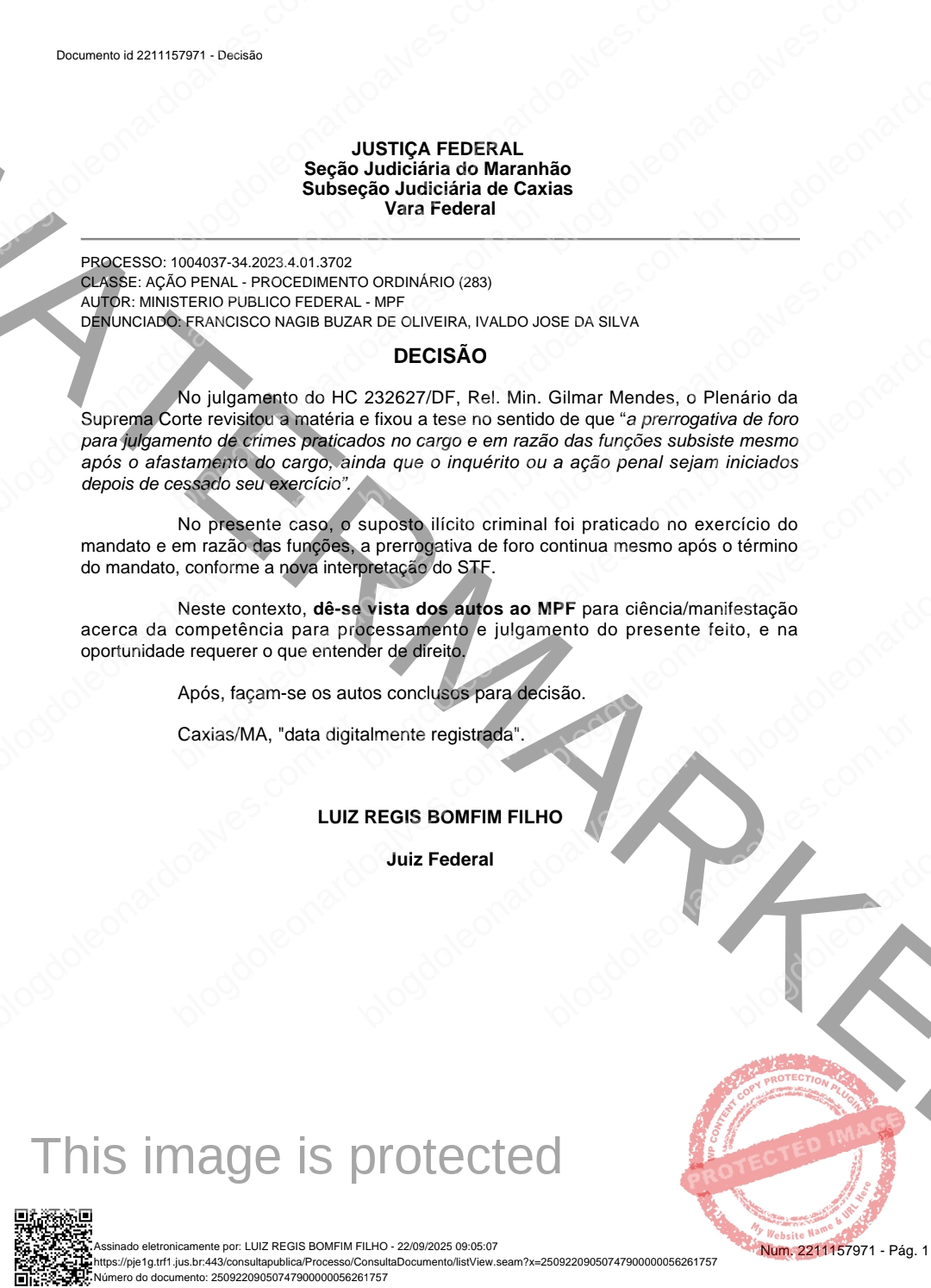 O processo criminal movido pelo Ministério Público Federal (MPF) contra o ex-prefeito de Codó, Francisco Nagib Buzar de Oliveira, e Ivaldo José da Silva, avança para a fase final de tramitação na Justiça Federal.