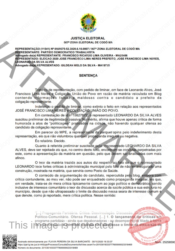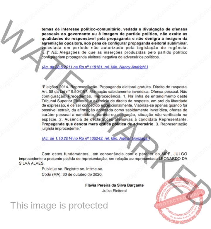 Na noite desta sexta-feira (30) a juíza eleitoral Flávia Pereira da Silva Barçante, negou mais um pedido da coligação de Zito Rolim contra o blogueiro Leonardo Alves.